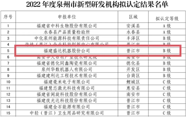 6月29日,泉州市科技局公布《泉州市科技局关于组织申报2022年泉州市新型研发机构的通知》(泉科〔2022〕36号),拟将福建盛达机器股份公司等24家单位认定为市级新型研发机构,并予以公示。 新型研发机构是以市场为导向,主要从事研发及其相关活动,具有投资主体多元化、建设模式...