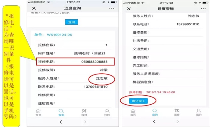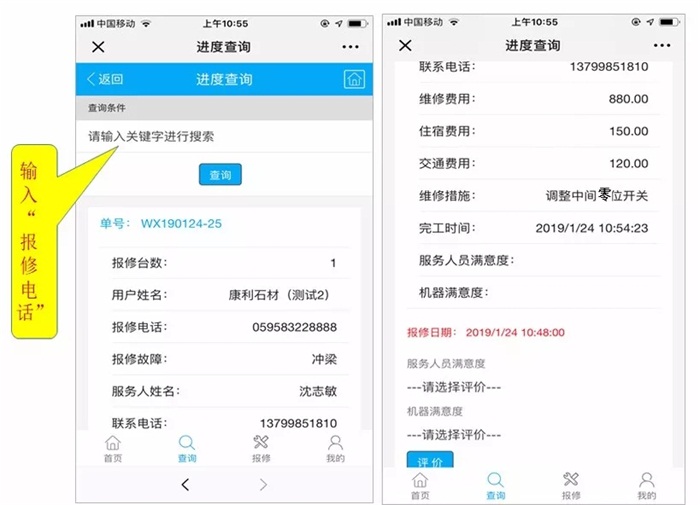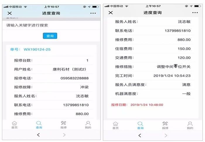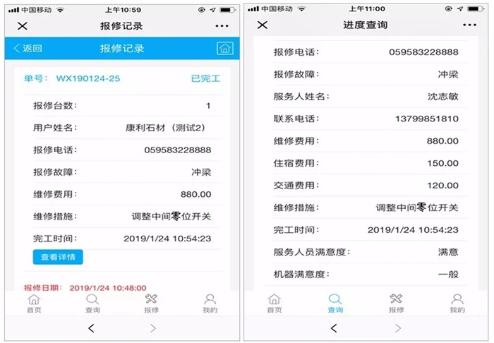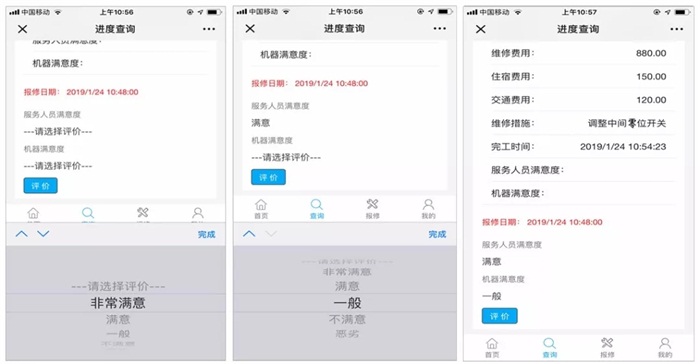 该系统可实现:实时查询报修表单、在线售后进度查询、在线售后服务评价等便利服务。