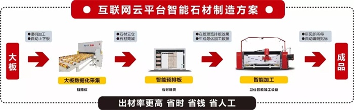 卫仕石材智能制造系列产品,可以实现大板数据化采集、智能预排版、智能加工。提高出材率,省时!省钱!省人工!