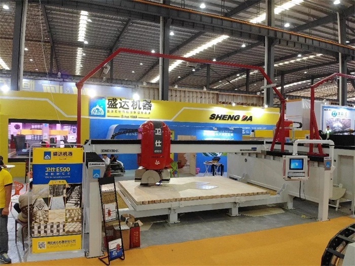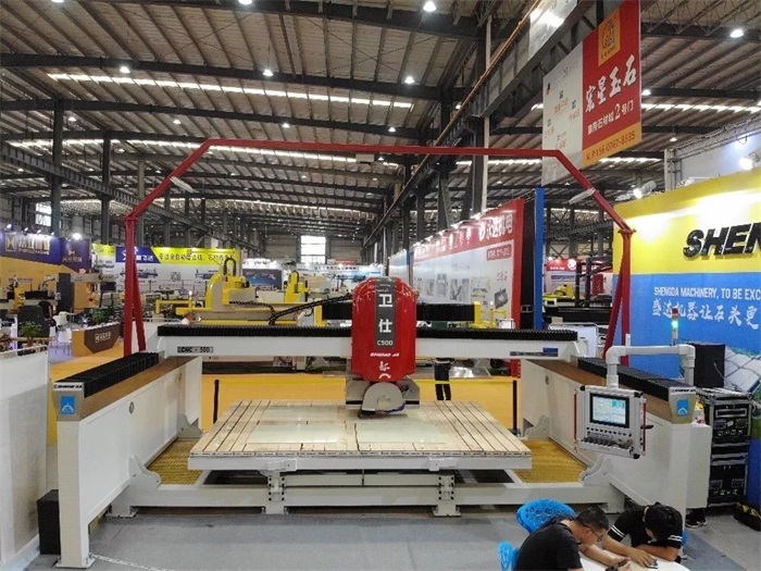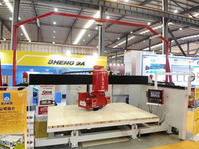 盛达机器现场展示了卫仕Worthy S600数控五轴桥式切石机,是引进了意大利先进技术。由意大利百利通公司提供全套图纸,并由百利通公司派员监管生产质控的全过程,是一款中国制造意大利品质的高端产品。