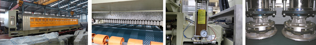 二、纵梁式一体结构,大理石磨盘为磨抛刀具,四类磨盘按直线排列安装于动梁,送料方式采用平板直行输送自动连续喂料;