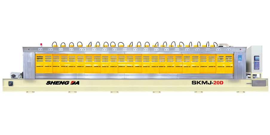 石材连续磨抛机是一种装有粗磨、中磨、精磨及抛光磨头的专用于磨抛石板材的加工设备,因板材喂料采用连续输送方式,称为连续磨机,用不同的磨料可以加工不同的板材,按磨抛材料不同又分为大理石、花岗岩和人造石等其他材料的磨抛机,同时因材料的加工工艺不同有摆动式磨头和固定式磨盘,是一种高效率的磨抛加工设备。