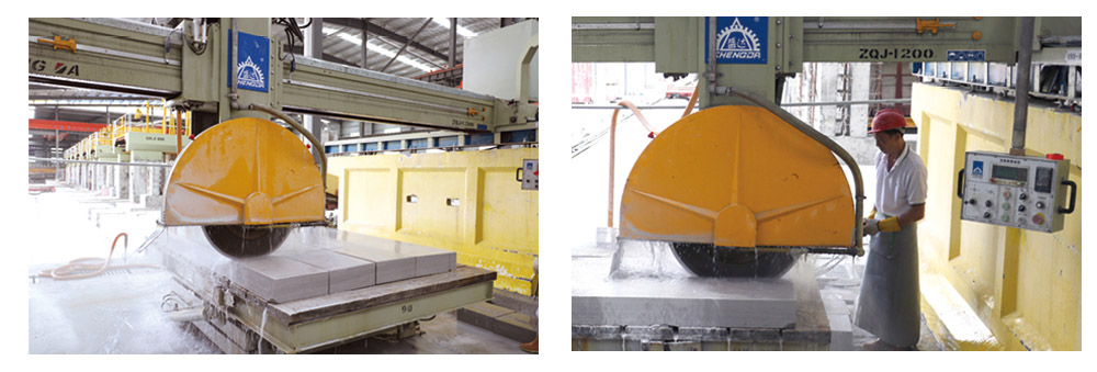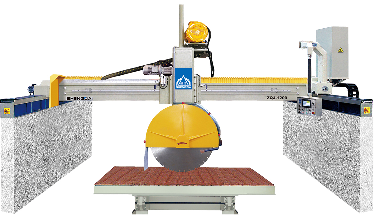 中切机是桥式切石机的一种,在石材加工中,方形条板石的切割是众多制品的前道工序,由于切割的石材厚度尺寸较大,因此采用中切机切割加工是较为理想的选择,设定运行参数后,切割过程自动化、程序化。