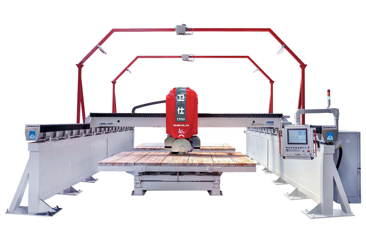 ● 配备视觉系统,可根据原扫描的板材信息,对摆放在机器上的待加工材料进行拍摄,录入数控系统,自动定位石板位置,并通过数控系统规划切割路线,进行切割工作。